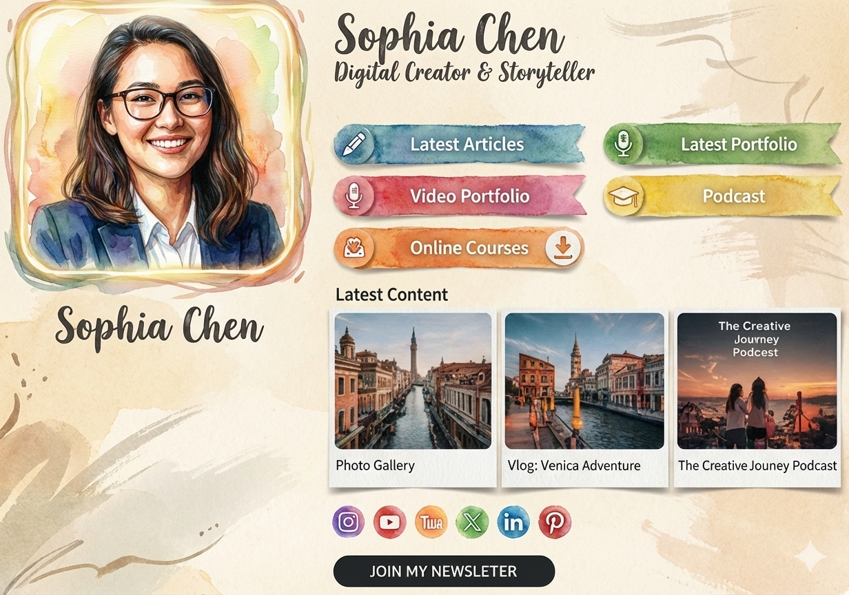 الهدف تنظيم جميع روابطك الرقمية المهمة بسهولة وأناقة، لتتيح لمتابعيك تصفح محتواك بسرعة وسلاسة في مكان واحد. ارتقِ بتواجدك الرقمي، عزّز تفاعلك، واجعل كل نقرة تُحدث فرقًا .